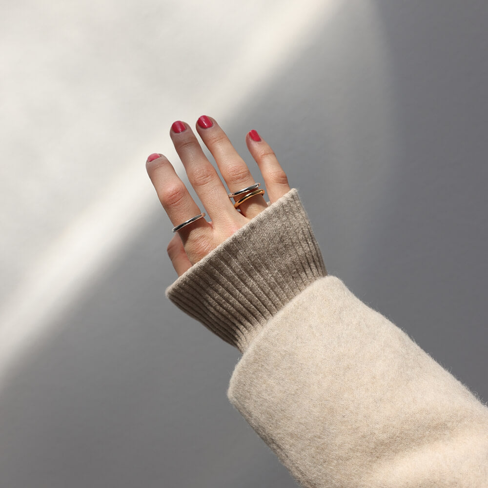 Vor allem der BOLD CROISSANT RING, der CLAIRE RING, der CLASSIC RING und der BASIC RING machen deinen Look zum Statement Look.