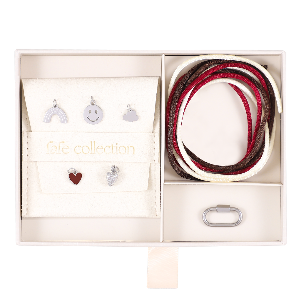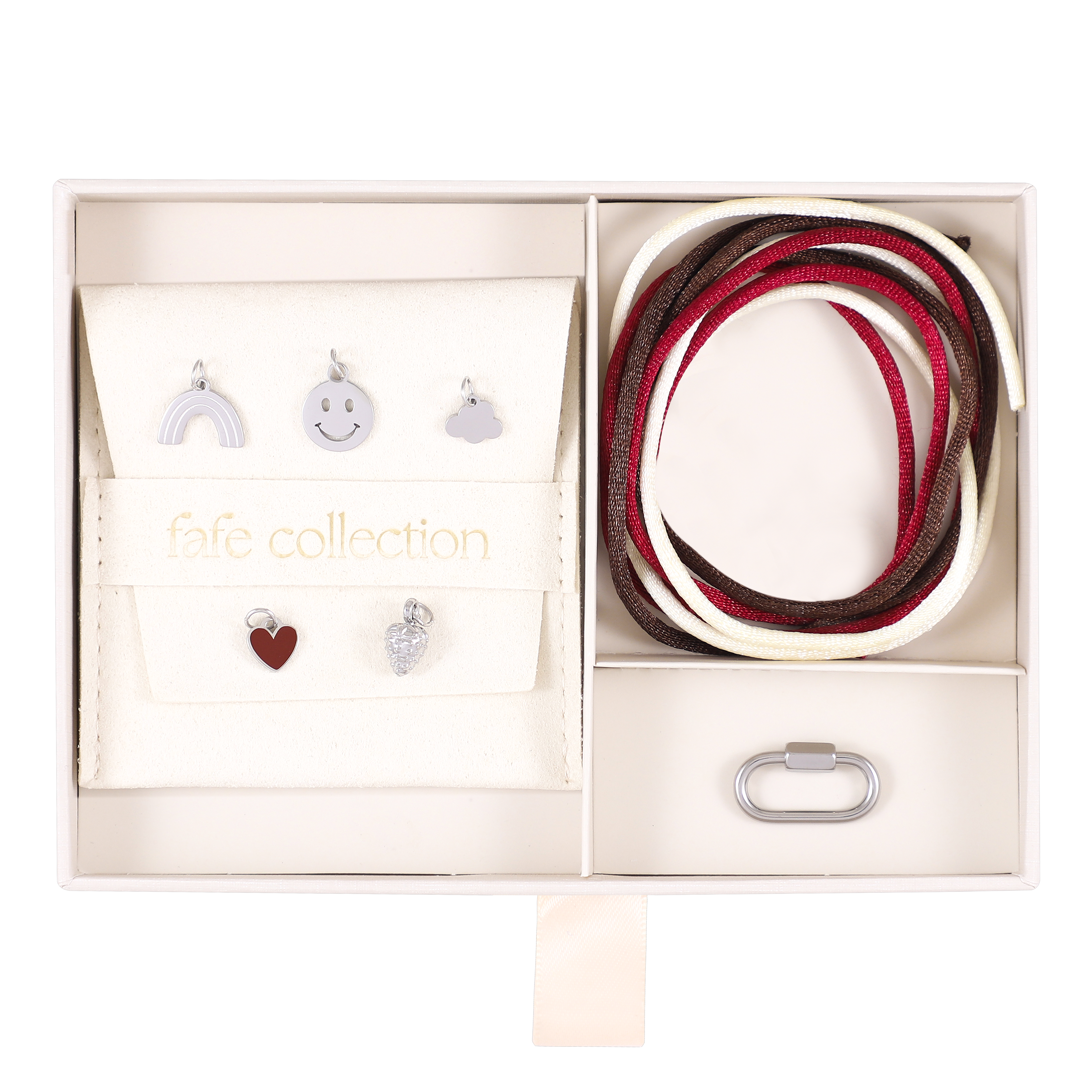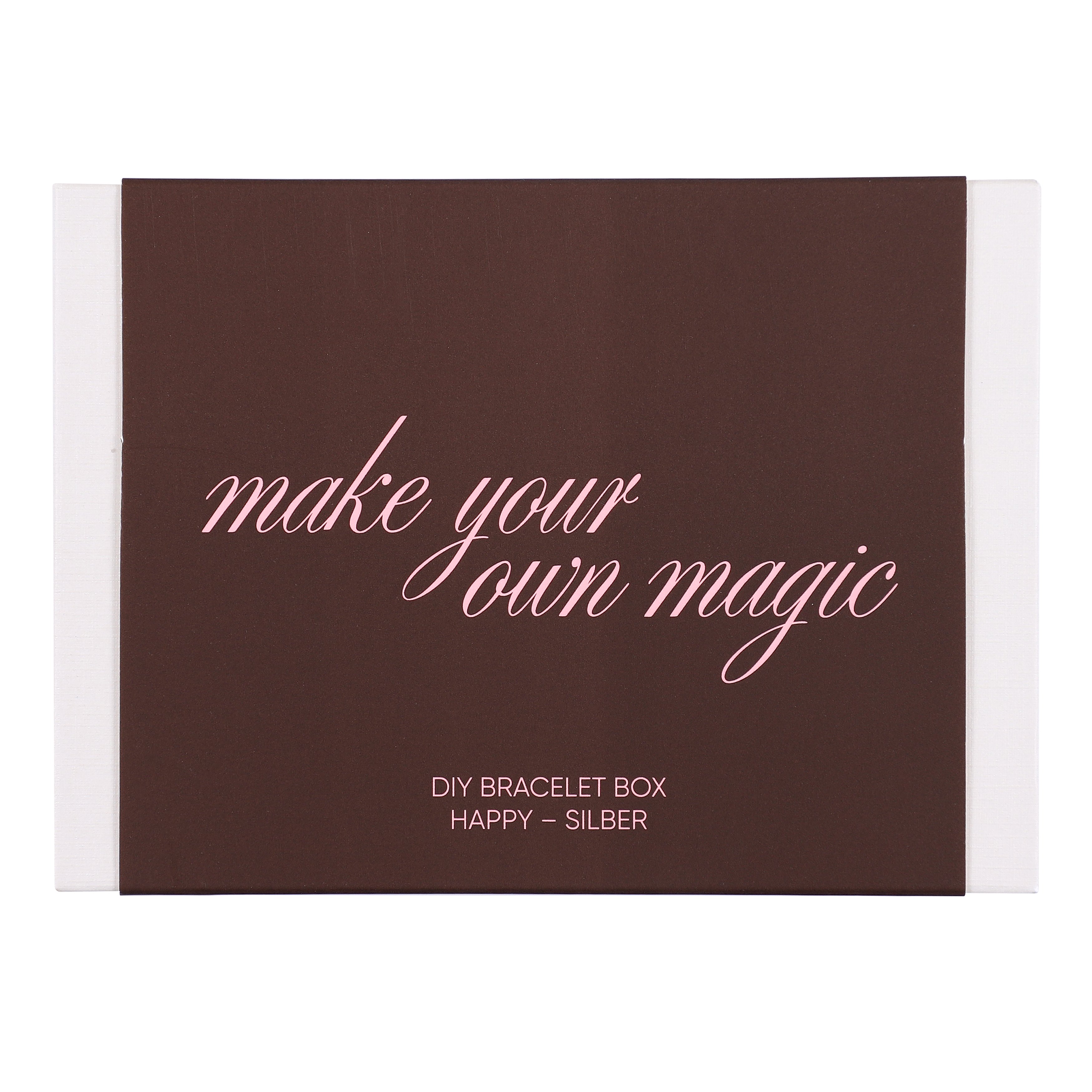 Mit unserer DIY BRACELET BOX - HAPPY gestaltest du deinen eigenen, individuellen Armschmuck – ganz nach deinem Stil! Die Box enthält alles, was du für einzigartige Armbänder brauchst: 5 hochwertige Charms, 3 farbige Bänder und einen Lock. Perfekt zum Verschenken oder für gemeinsame kreative Zeit. MAKE YOUR OWN MAGIC!
