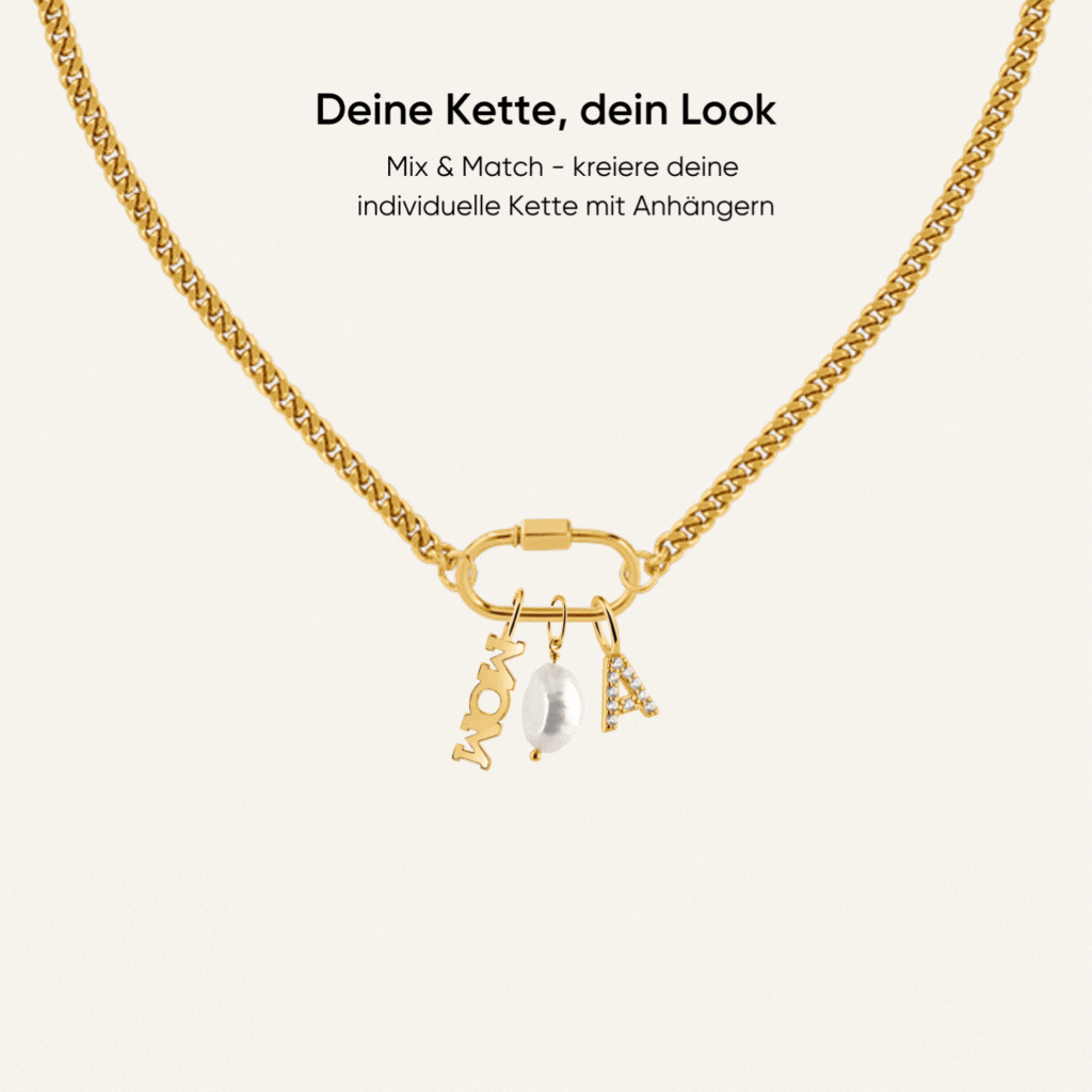 Get creative - personalisiere deine eigene LOCK CHAIN CURB. Durch die Kombination aus Chain und Lock sieht unsere LOCK CHAIN CURB nicht nur super cool aus, sondern lässt sich auch immer wieder neu stylen - egal ob im simplen Monochrome Look oder im ausgefallenen Bicolor Style.