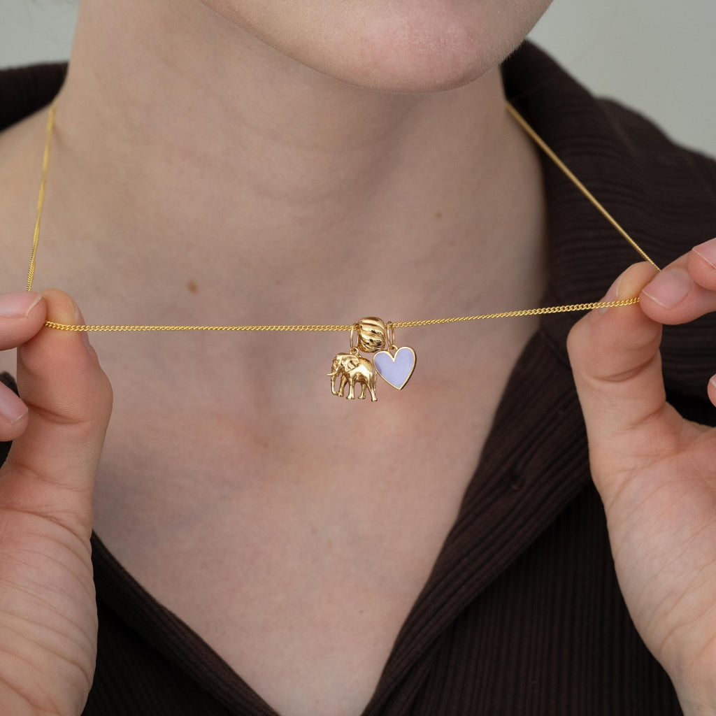 Das Charm in Form eines Elefanten ist ein echter Hingucker und symbolisiert Stärke, Weisheit und Glück. Die feinen Details des Elefantenmotivs verleihen dem Schmuckstück eine besondere Eleganz. Ob als täglicher Begleiter oder als Accessoire zu besonderen Anlässen, dieser Anhänger verleiht jedem Outfit eine spezielle Note. Ein ideales Geschenk für Tierliebhaber oder als persönlicher Talisman.