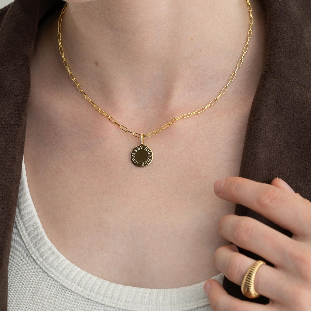 Unser SHINY LOOP CIRCLE COIN wird dein ganz persönliches fafe! Vervollständige ihn mit einer individuellen Gravur und kreiere ein besonderes Schmuckstück mit Bedeutung - perfekt als Geschenk für dich oder deine Liebsten.