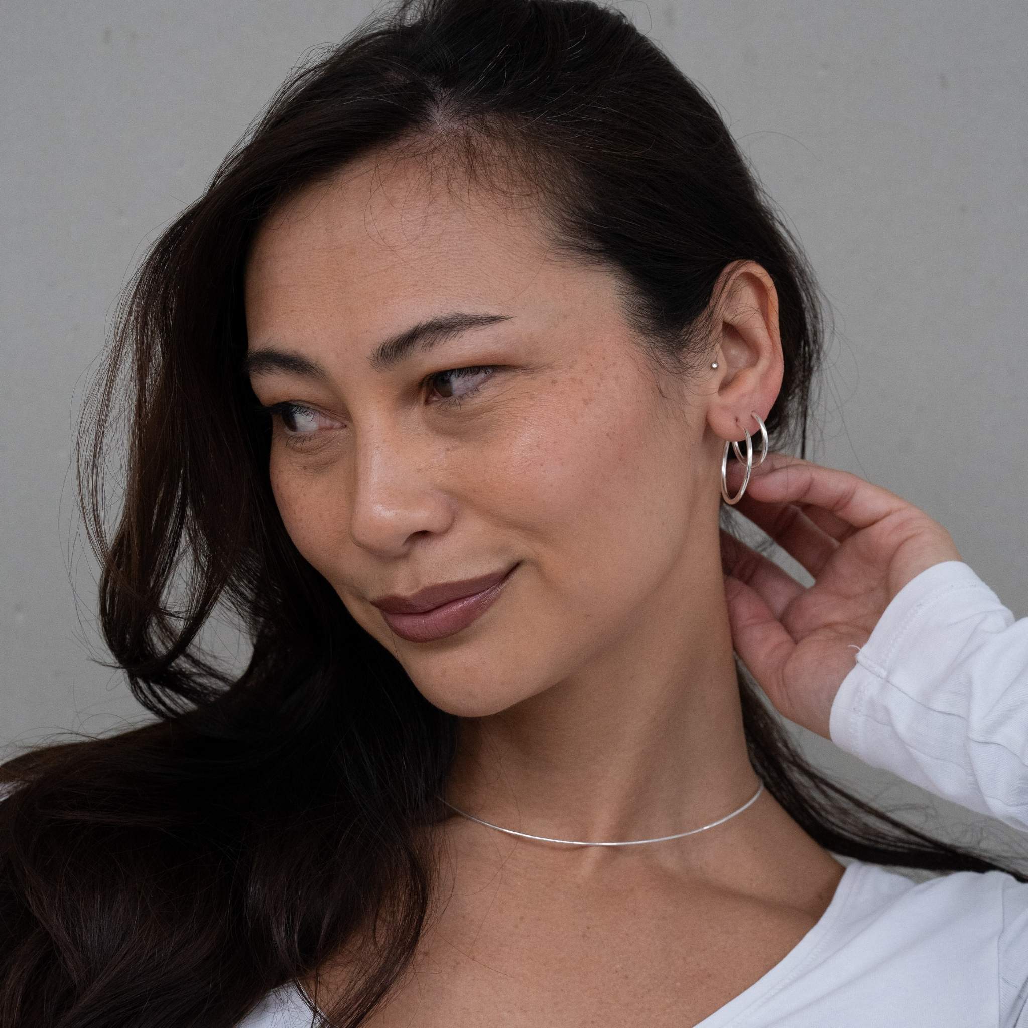 Fein, schlicht, perfekt! Die Slim Hoops sind dein zarter Begleiter für jeden Look. Solo getragen oder kombiniert – immer ein minimalistisches Statement.