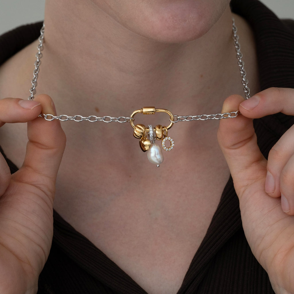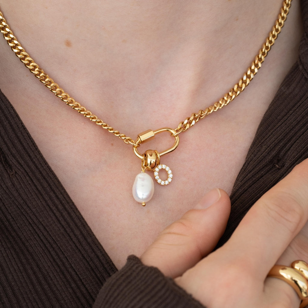 Der WATERPEARL CHARM verwandelt jede Kette in ein elegantes Schmuckstück. Durch die Entstehung der hochwertigen Barockperle glänzt jede Perle in einer unterschiedlichen Form und macht Dein fafe Charm zu einem einzigartigen Hingucker. Entdecke noch weitere elegante fafe Pieces in unserer PEARL COLLECTION. Durch die natürliche Entstehung der Perlen können Form und Größe leicht variieren, was dazu führt, dass keine Perle wie die andere ist. Die Einzigartigkeit und Eleganz der Perlen machen die PEARL COLLECTION zu etwas ganz Besonderem. • Der Charm passt an unsere Basic, Shiny, Braided & Vintage Hoops sowie unsere Basic Ketten • Breite Perle: ca. 0,8 cm • Länge Perle: ca. 1,2 cm Wir von fafe collection möchten Premiumschmuck alltäglicher machen. Größtenteils besteht unser Schmuck aus 925 Sterling Silber und wird mit 18 Karat Gold mehrfach vergoldet, damit er langlebig und beständig ist. Außerdem sind alle Schmuckstücke nickelfrei und sehr gut verträglich. Unsere Schmuckstücke werden aus recycelten Materialien handmade hergestellt, unser Versand verläuft 100% CO2 neutral. Für mehr Inspirationen folge uns auf Instagram! Hier zeigen wir Dir täglich neue Schmuckstücke und Trage-Kombinationen.