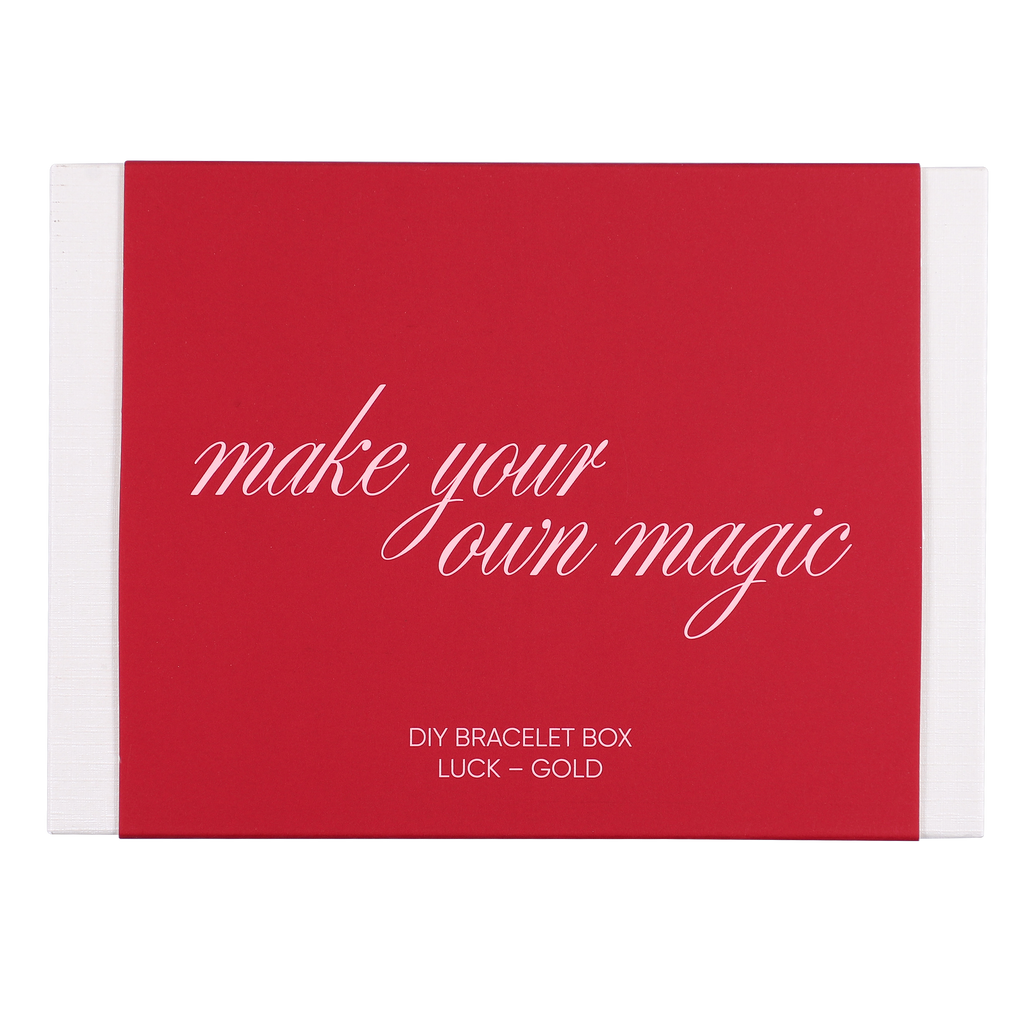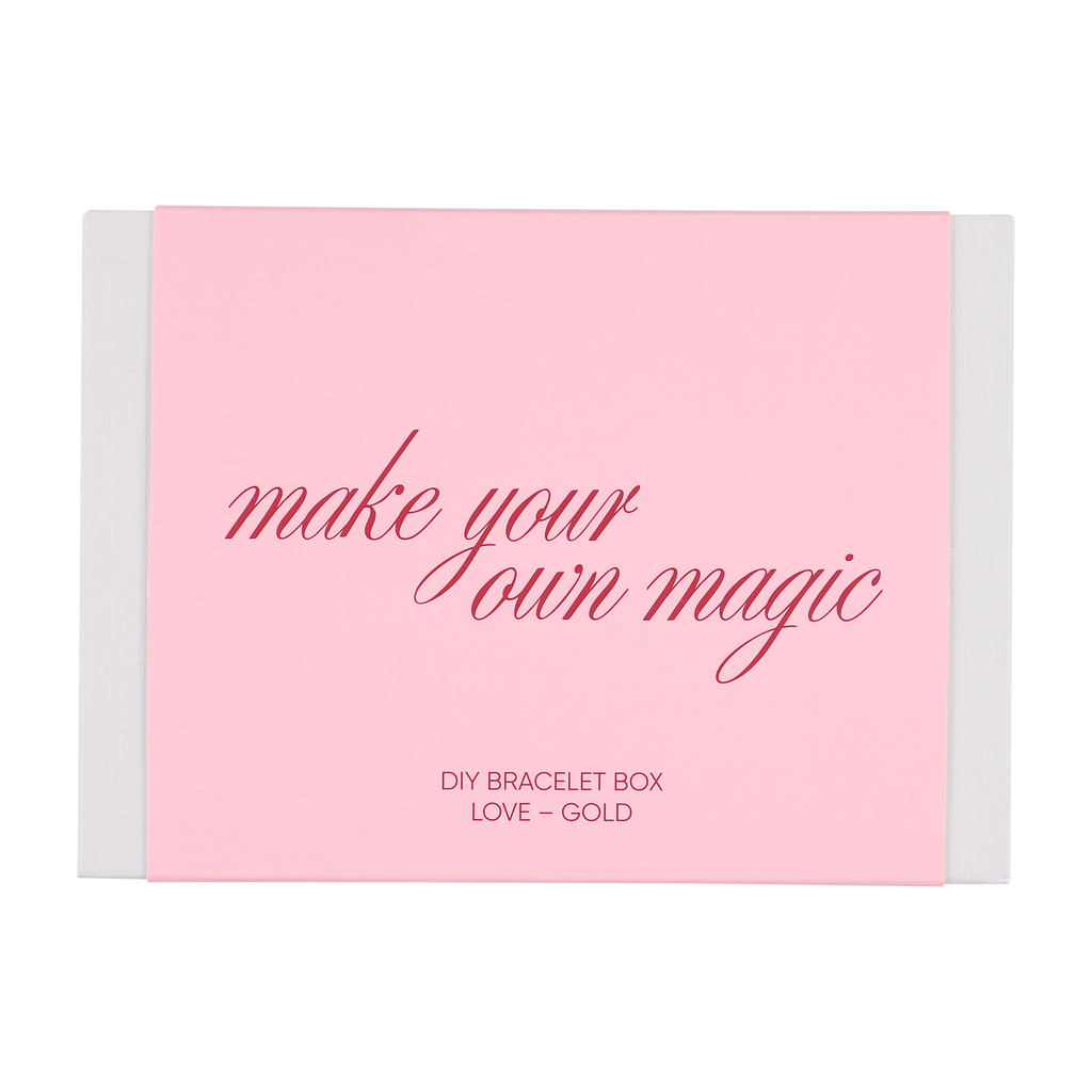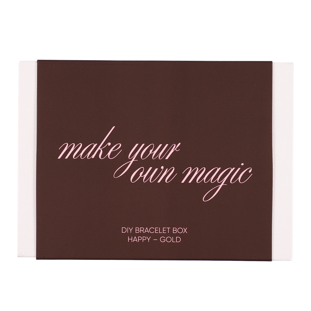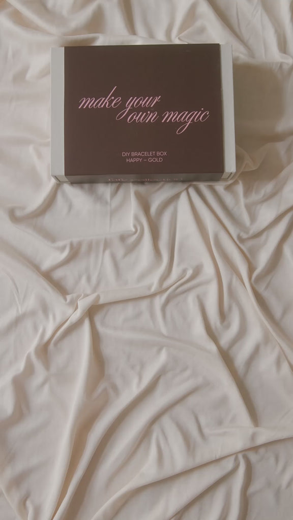 Die DIY BRRACELET BOX gibt es in drei verschiedenen Varianten: HAPPY, LOVE und LUCK. In den Boxen ist jeweils ein Set aus 3 hochwertigen Bändern in verschiedenen Farben, fünf verschiedene Charms und ein Lock enthalten. Alle Boxen gibt es in silber und gold.