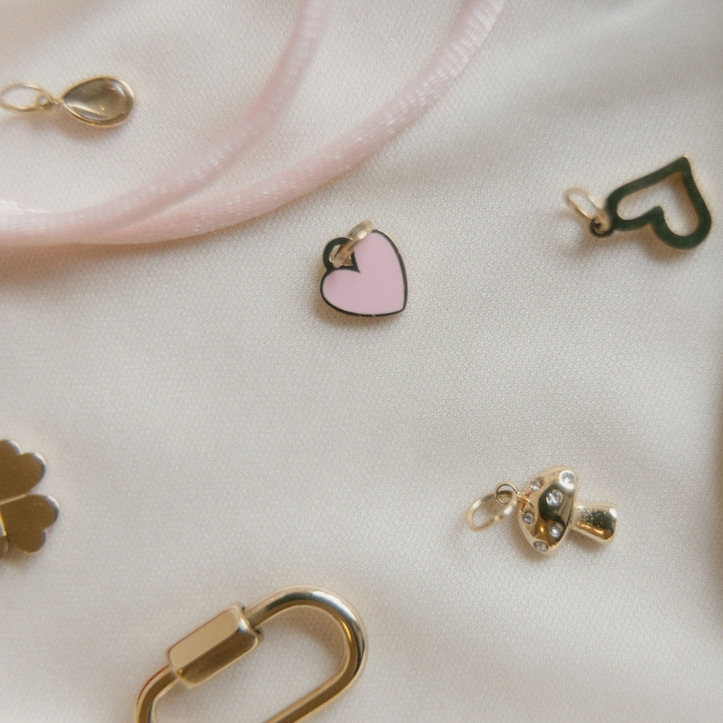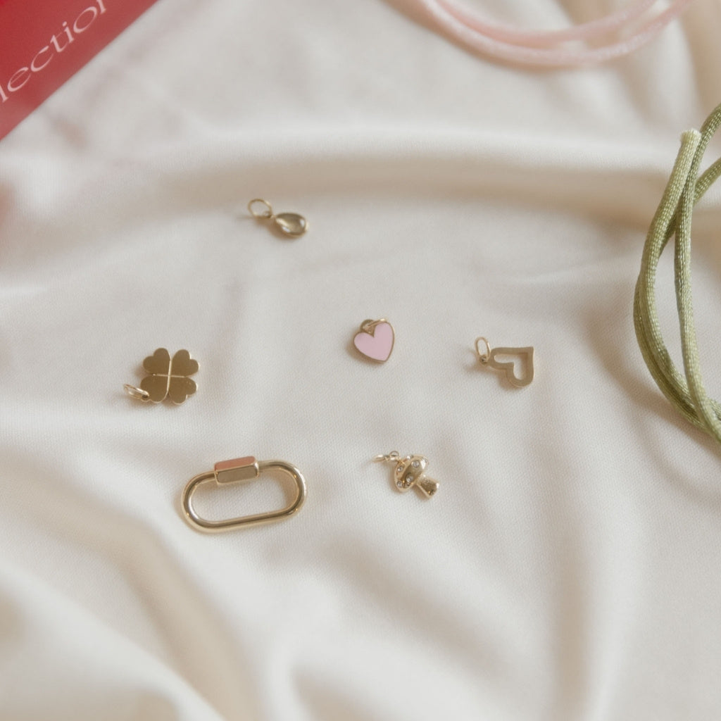 Hochwertige und wasserfeste Charms aus Stainless Steel mit 18k Vergoldung: DROP, HEART, LUCK, MUSHROOM & HEART ROSE