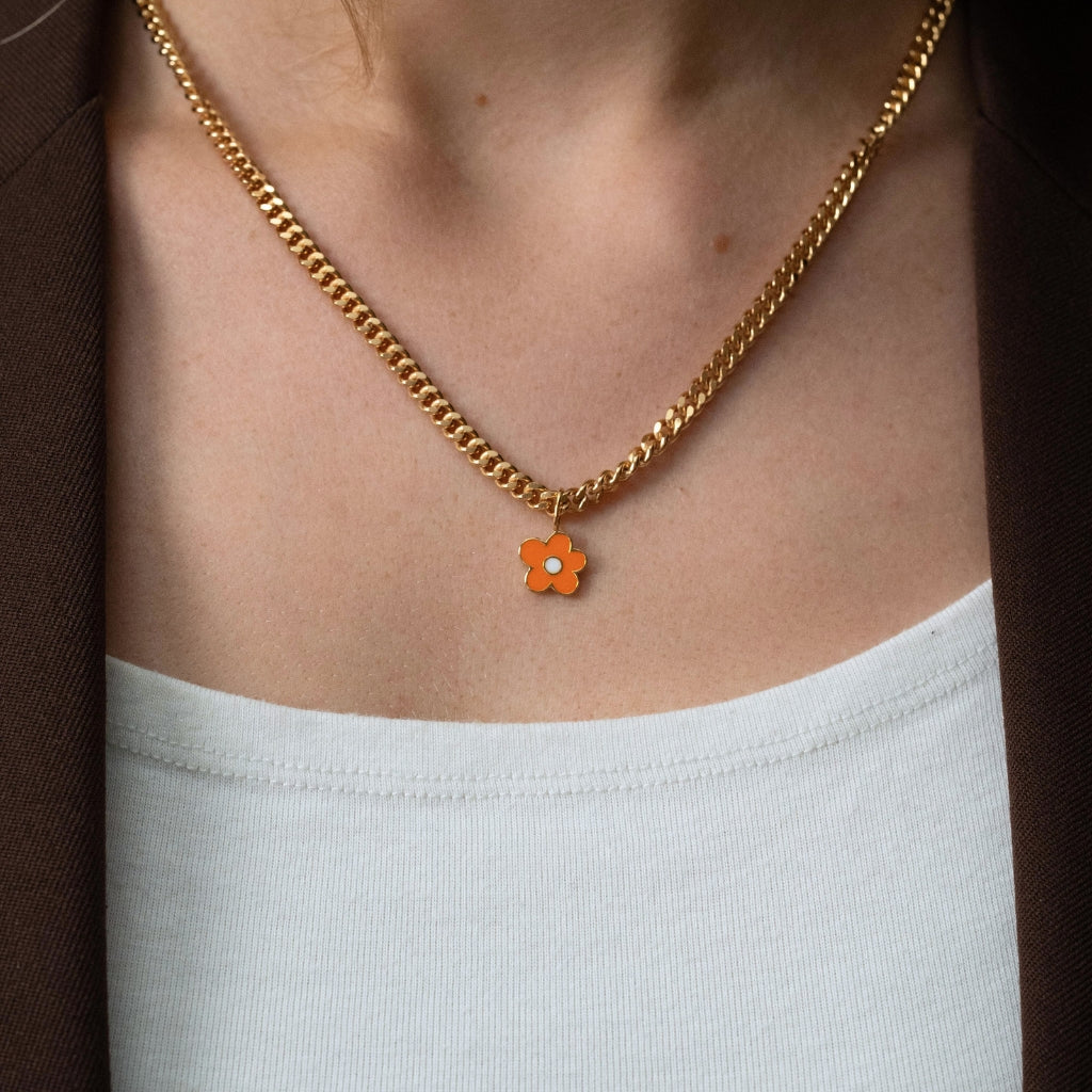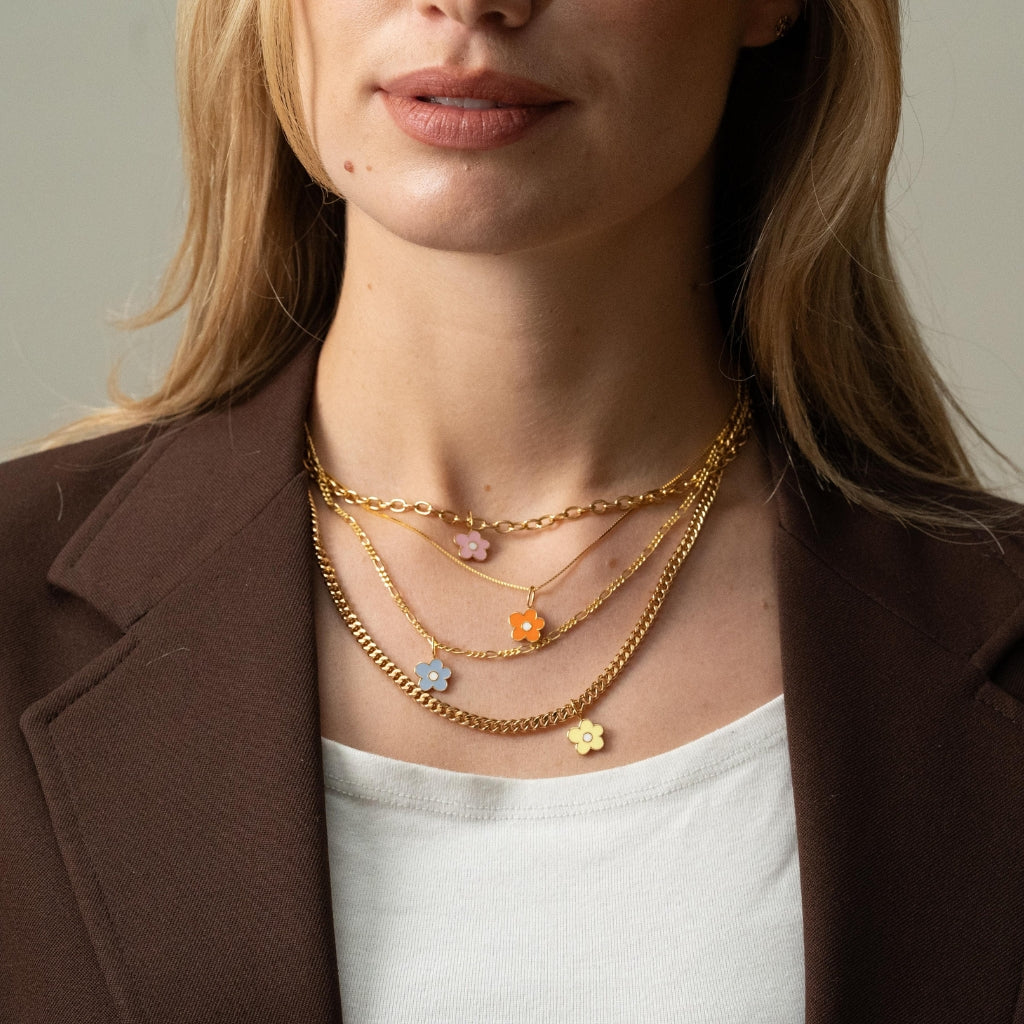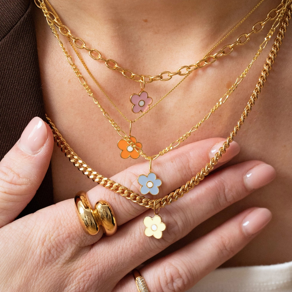 Verleihe deinem Schmuck-Layering ein farbenfrohes Update. Unsere Flower Charms sind mehr als nur Anhänger – sie sind kleine Glücksbringer, die handgefertigt und mit viel Liebe zum Detail entstehen. Durch die hochwertige 18K Mehrfachvergoldung und die Verwendung von recyceltem Gold verbindet dieser Charm modernes Design mit einem bewussten Lifestyle.