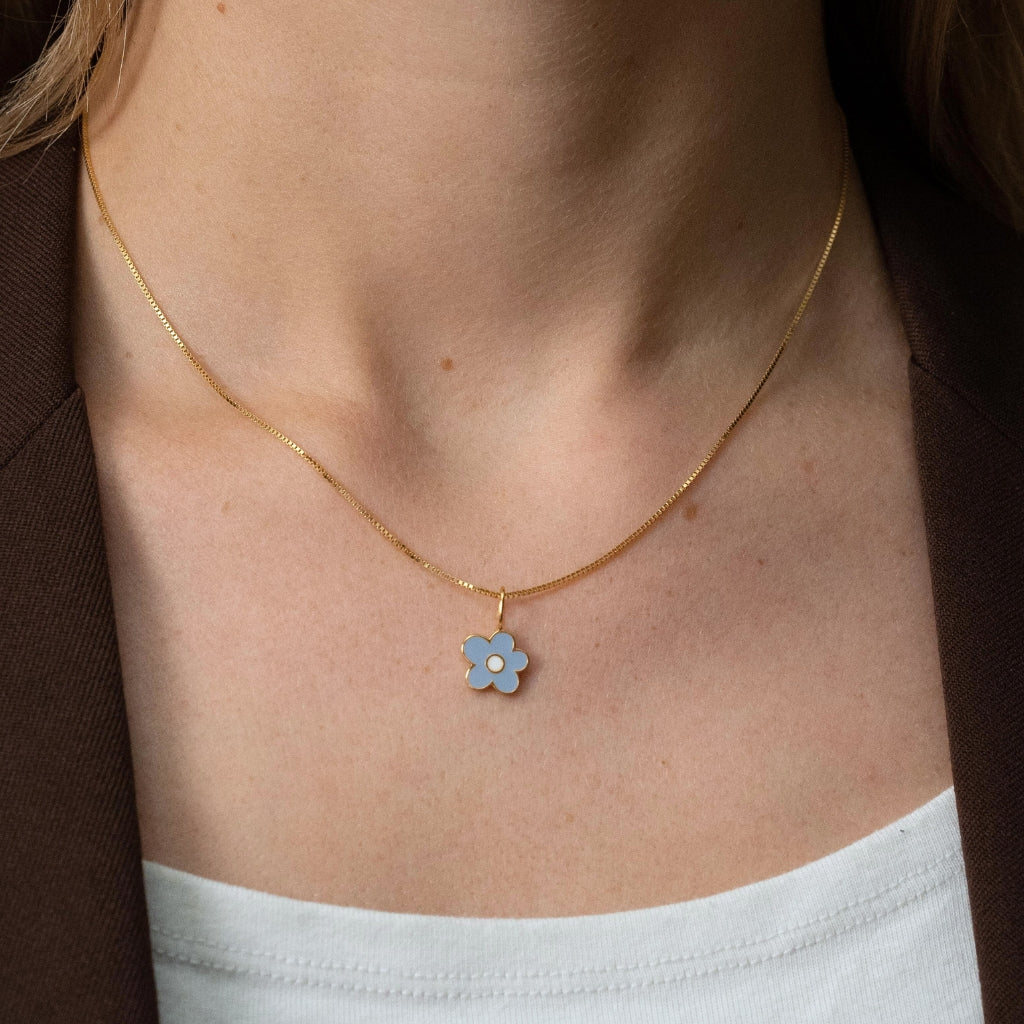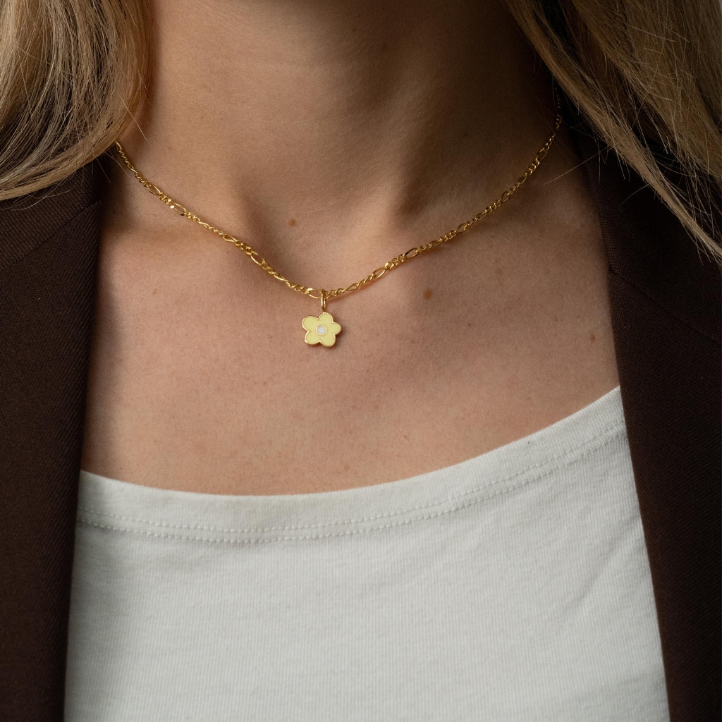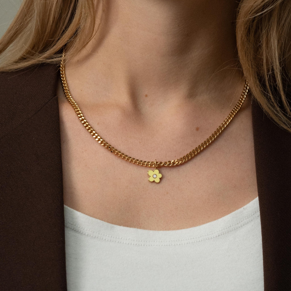 Verleihe deinem Schmuck-Layering ein farbenfrohes Update. Unsere Flower Charms sind mehr als nur Anhänger – sie sind kleine Glücksbringer, die handgefertigt und mit viel Liebe zum Detail entstehen. Durch die hochwertige 18K Mehrfachvergoldung und die Verwendung von recyceltem Gold verbindet dieser Charm modernes Design mit einem bewussten Lifestyle.