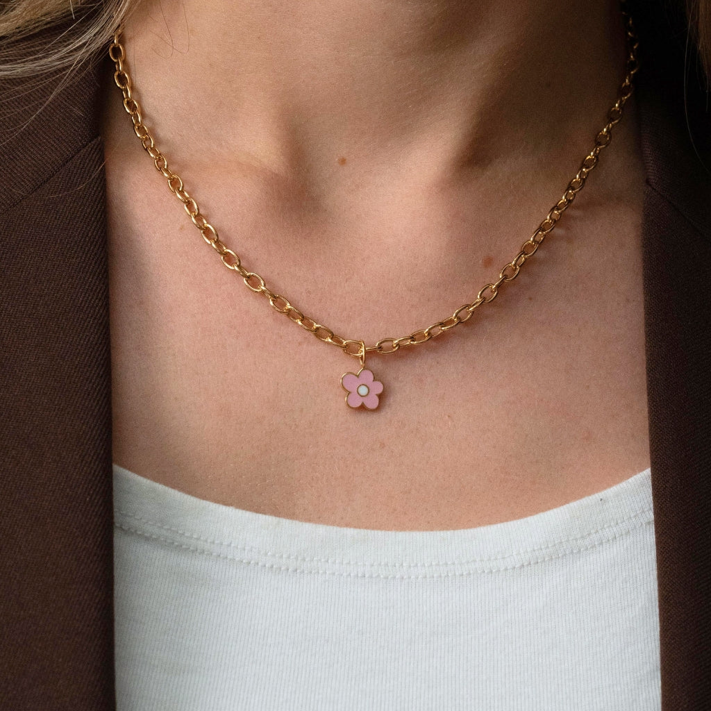 Jeder Flower Charm wird individuell mit Enamel veredelt. Das sorgt für eine glatte, glänzende Oberfläche und eine intensive Farbtiefe, die nicht verblasst. Dank der nickelfreien Verarbeitung ist der Anhänger besonders hautfreundlich und auch für sensible Haut ideal geeignet.