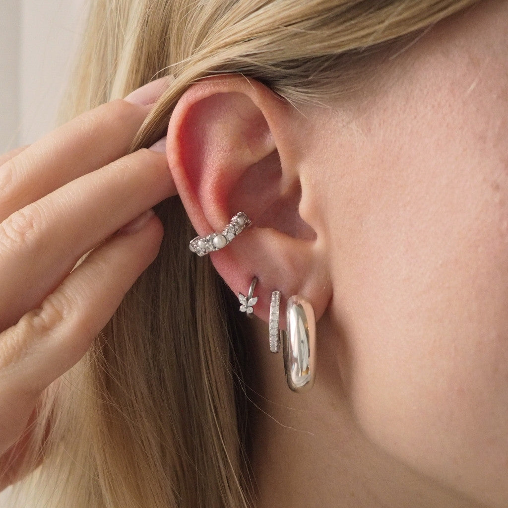 Mit unseren Piercings bringst du deine Earparty auf ein neues Level! Unsere Piercing Hoops sind mit Scharnierverschlüssen versehen, daher kannst du es ganz leicht an- und ablegen und sie reizen dein Ohr nicht. Dieses Piercing eignet sich perfekt für deinen Conch, Helix oder als Ohrring.